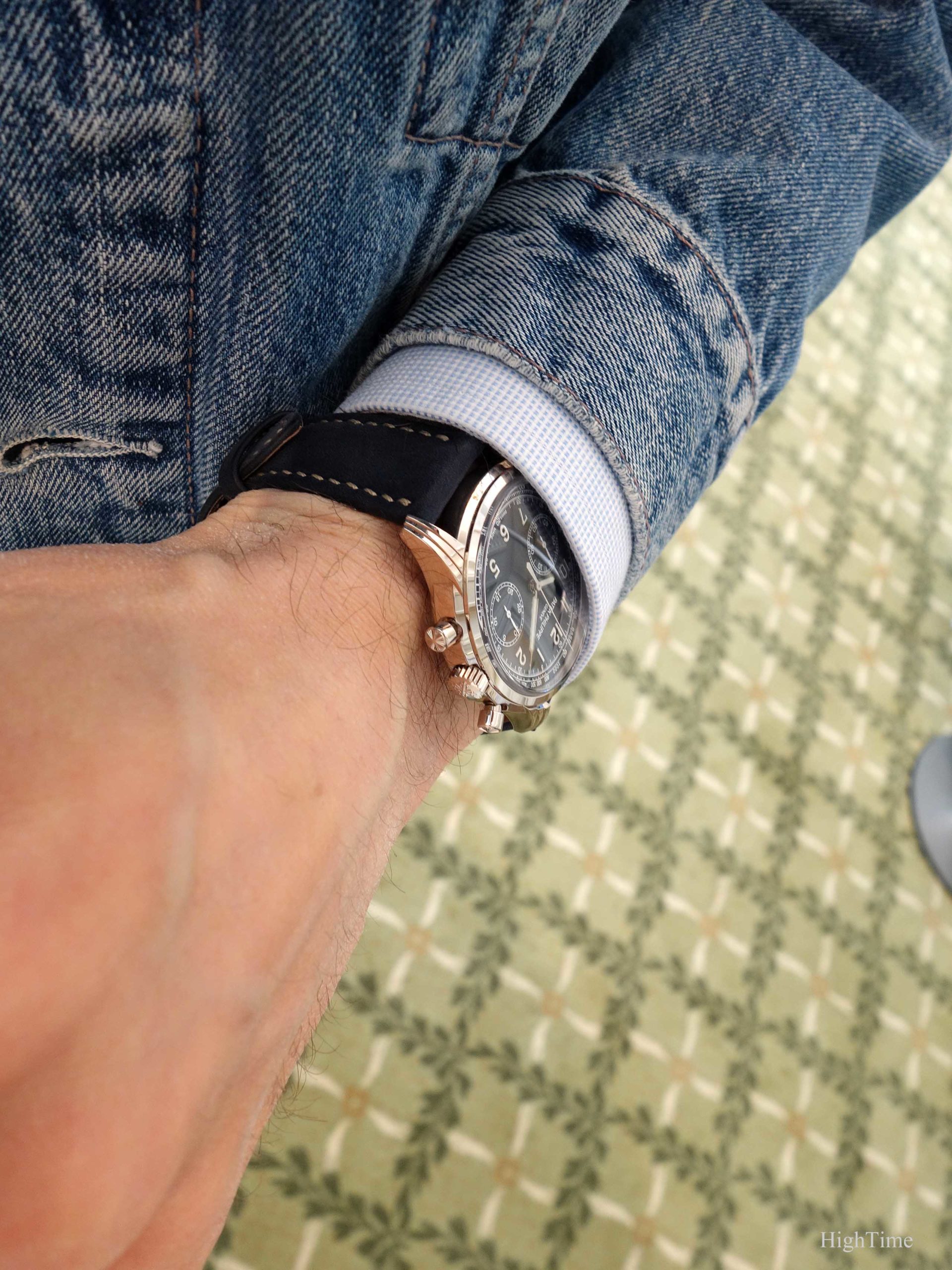 In the dimensions field, the 41 x 11.45mm is excellent for today’s chronograph standards (even if I personally prefer a 40mm diameter considering my small wrist size, around 16cm). Diameter is a totally subjective topic and relies on the wearer’s wrist size or what proportions one was used to seeing in the past. Sizes have increased since the first half of the 20th century’s 30mm (and so have people!). And let’s not forget regional differences, more or less sporty outfits, etc…. Thus, we see more and more owners preferring bigger watches. As a consequence, 41mm for a chronograph looks quite right for many, especially from what we see in the watch world and that our eyes are getting used to.